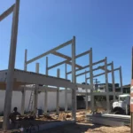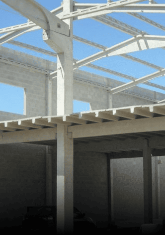 Posto de gasolina: Estrutura pré-moldada 7,5×23,5x6m com lajes, vigas de mezanino, baldrames e de fechamento. Estrutura idealizada para maior aproveitamento do pré-moldado e menor utilização de mão de obra in loco, possibilitando benefícios como menor tempo de execução e redução de perda de materiais.