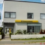 Agencia Bancária: estrutura pré-fabricada 14x30x8,5m. Pilares locados viabilizando o projeto, com platibandas para auxiliar o fechamento até a cobertura.