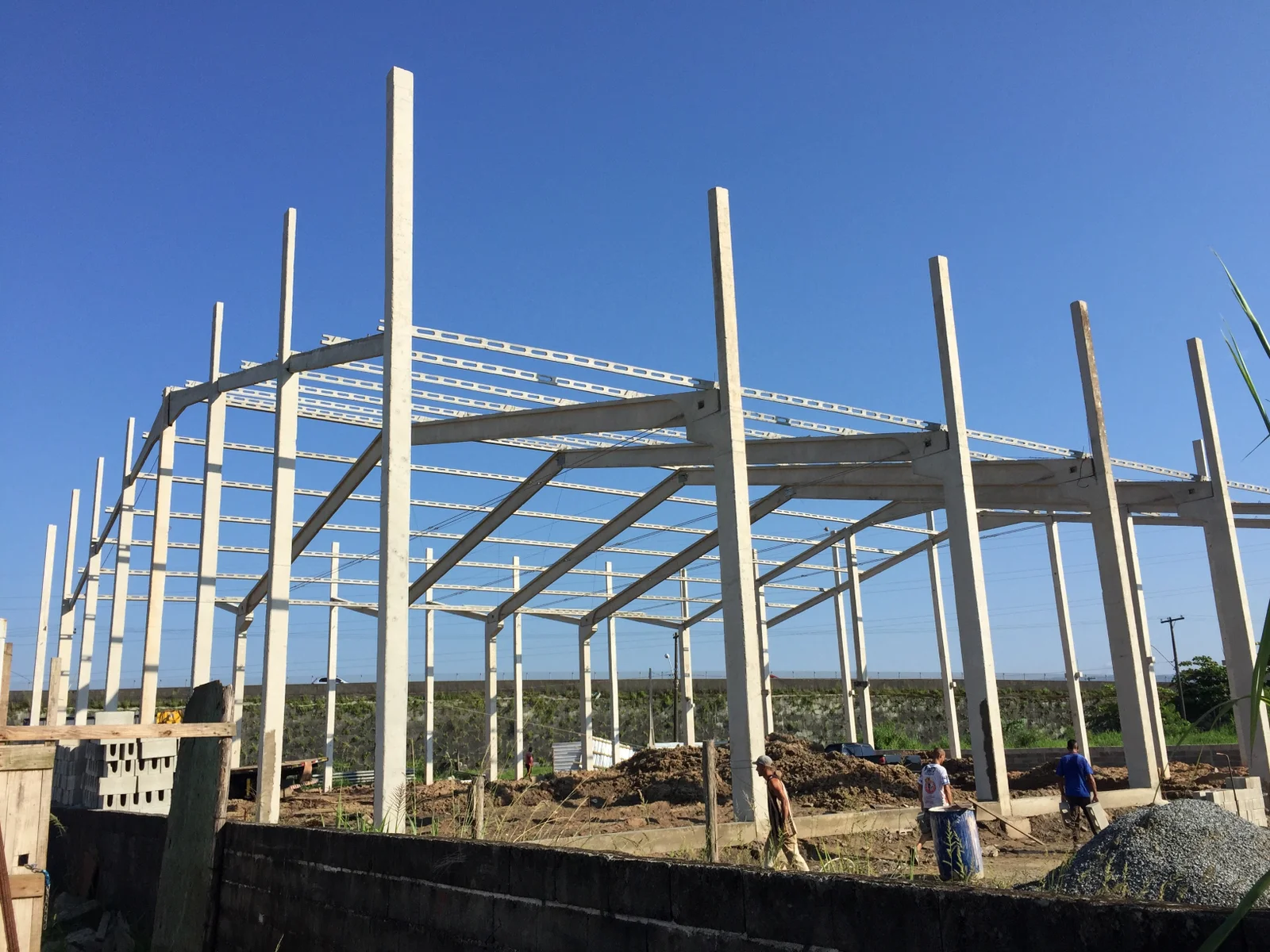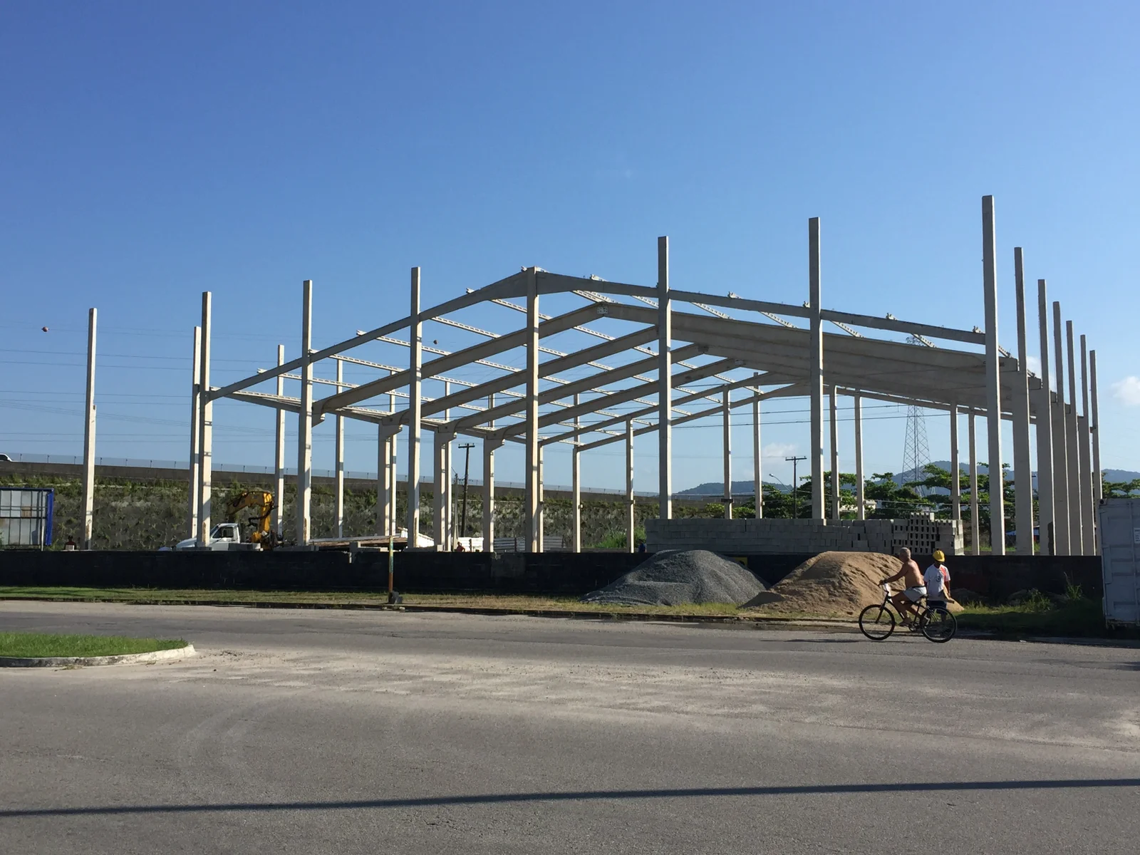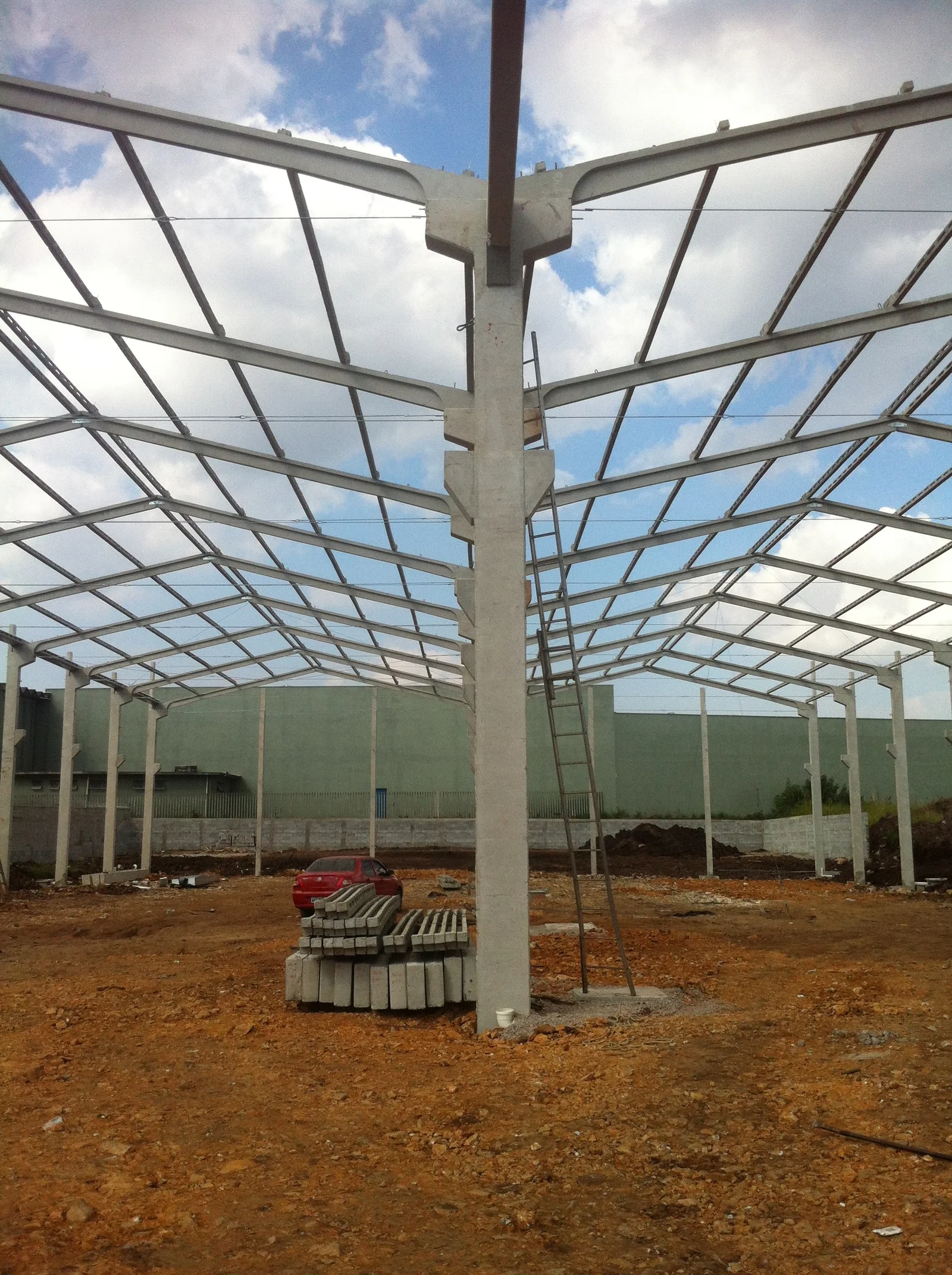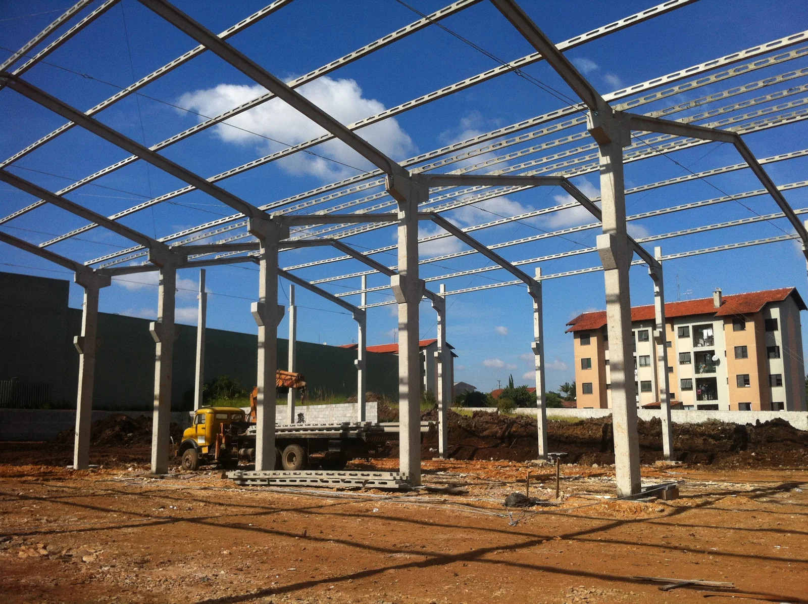 Galpão para mercado (1): estrutura dupla de 39x85x9m, com pilares de oitão para auxiliar no fechamento da obra.