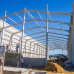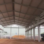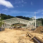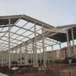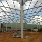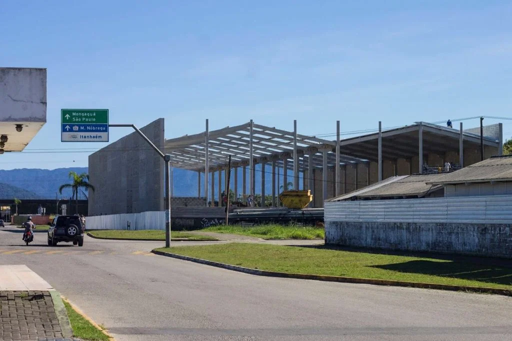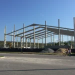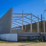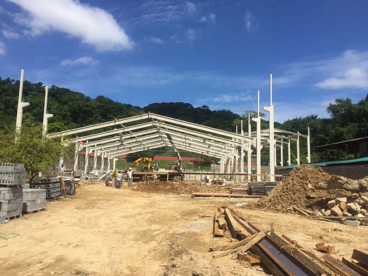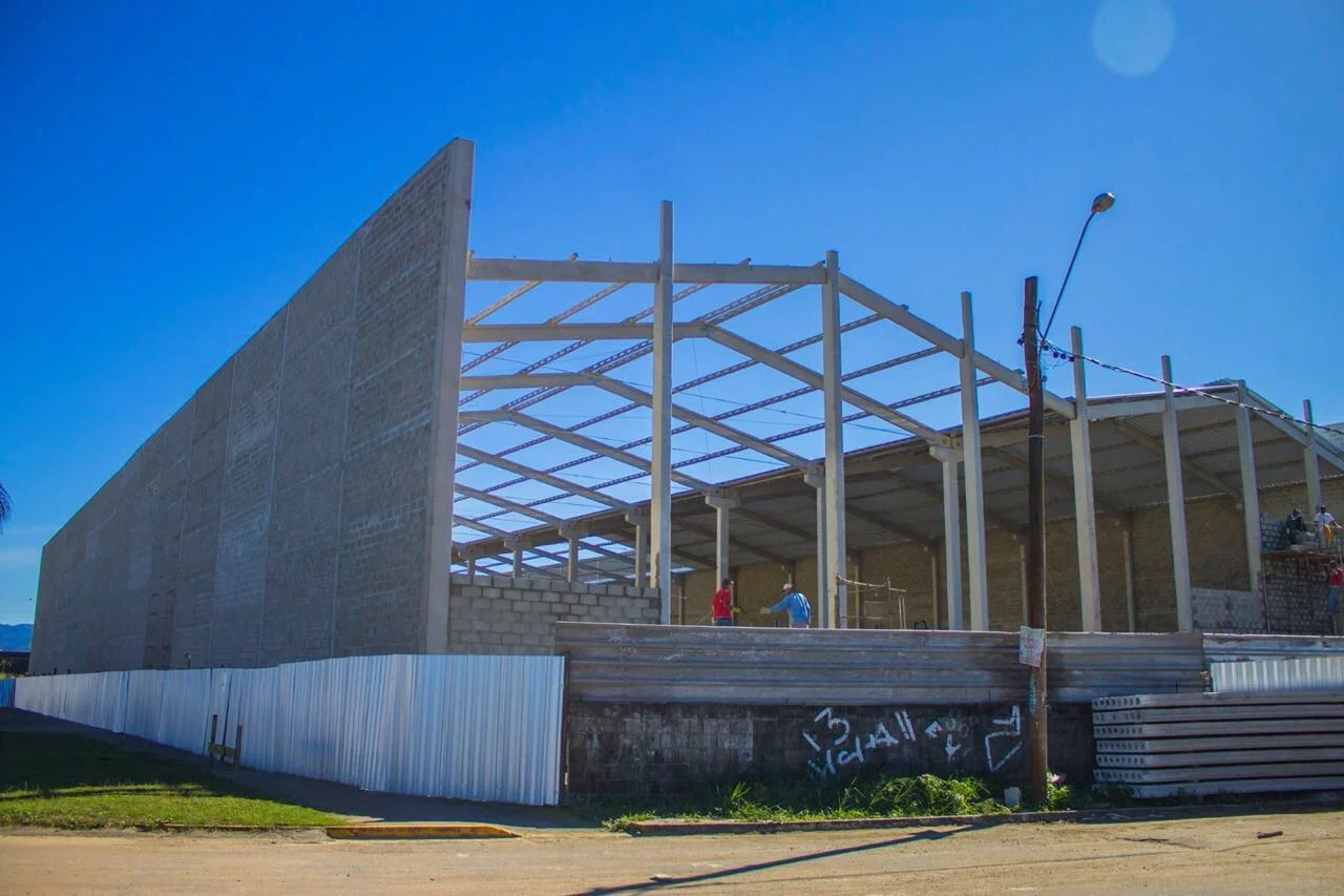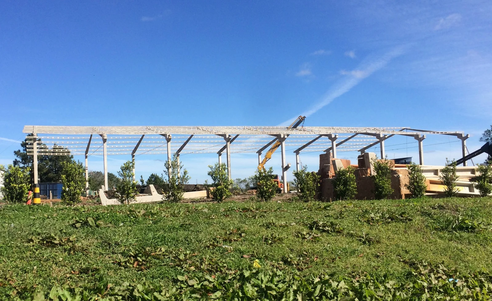Galpão para mercado (1): estrutura dupla de 39x85x9m, com pilares de oitão para auxiliar no fechamento da obra.